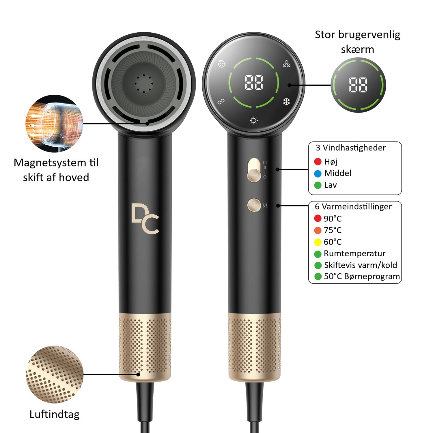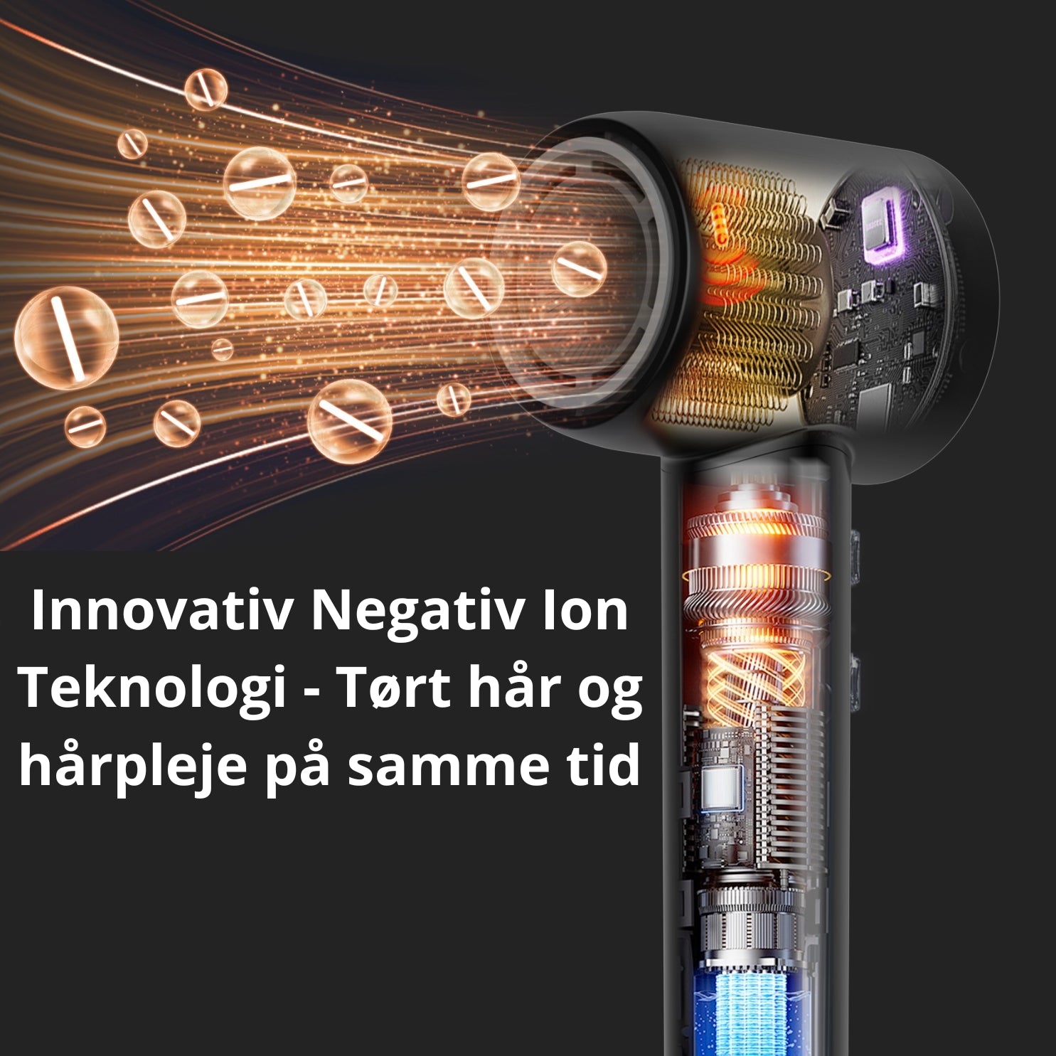 De negative ioner sikrer dig både flottere samt sundere hår. Det giver dig hårtørring langt hurtigere, end du er vant til. Samtidig vil du opleve at den statiske elektricitet forsvinder, så du ikke generes af krus.