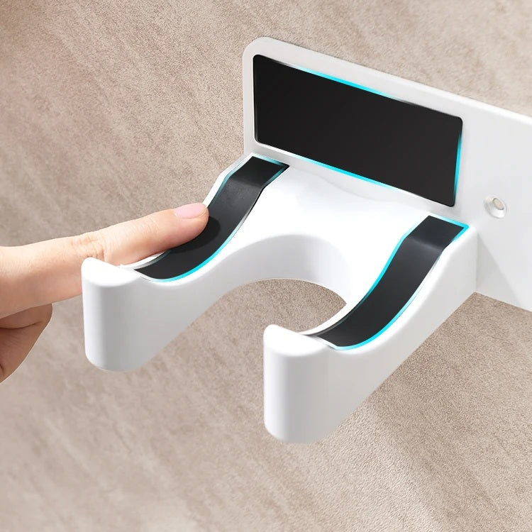 Vi har tænkt på det hele med Luksus Hårtørrerholderen. Der er gummibelægning for at beskytte hårtørreren, så den ikke bliver ridset. Det er stor nok afstand til, at det store runde diffuserhoved kan sidde på det magnetiske beslag. Du kan altså tilpasse dette ophæng helt som du ønsker.